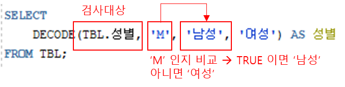 1) DECODE 함수의 파라미터는 여러개를 사용할 수 있지만 최소 3개는 들어가야 한다.
