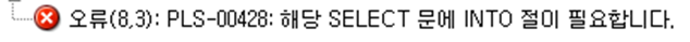 •오류(8,3): PLS-00428: 해당 SELECT 문에 INTO 절이 필요합니다.