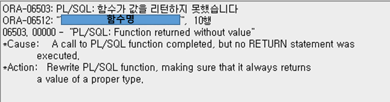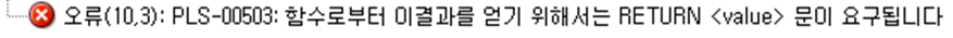 또는 RETURN; 을 아예 작성하지 않으면 컴파일은 잘 되지만, 함수 호출 시 오류가 발생한다.