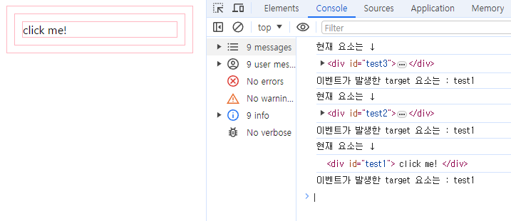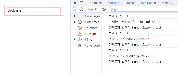 부모 요소들인 test2와 test3에 addEventListener의 3번째 파라미터로 true를 주게되면, capturing이 된다.