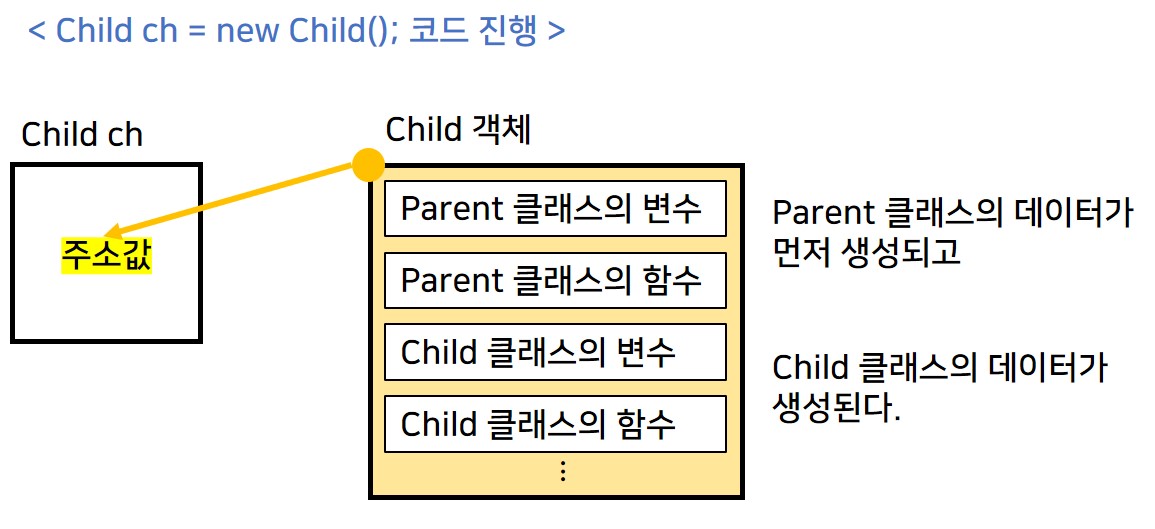 예를 들어, Parent 클래스가 있고 Parent 클래스를 Child 클래스가 상속할 때,