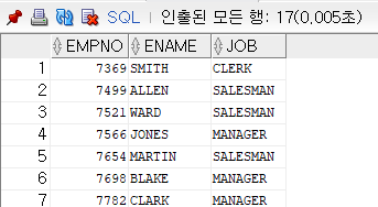 예) SELECT EMPNO, ENAME, JOB FROM EMP