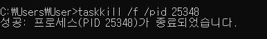 4. 프로세스 아이디로 주겨버리기 : taskkill /f /pid 25348