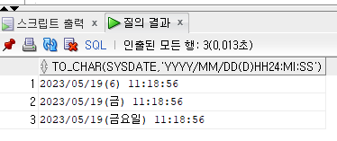 SELECT TO_CHAR(SYSDATE, 'YYYY/MM/DD(D) hh24:mi:ss') FROM DUAL